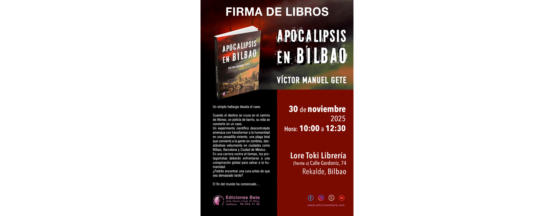 FIRMA DE EJEMPLARES DEL LIBRO "APOCALIPSIS EN BILBAO" EN LA LIBRERÍA LORE TOKI DE BILBAO