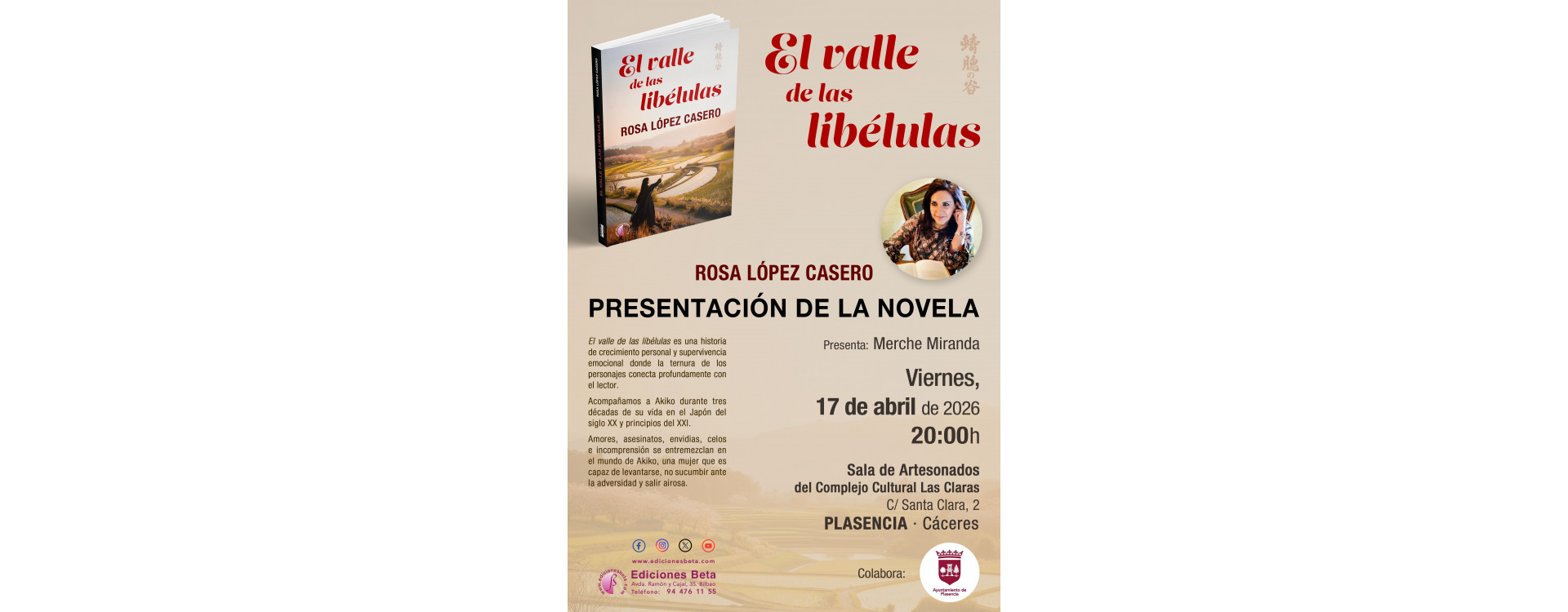 Presentación del libro "EL VALLE DE LAS LIBÉLULAS" en el Complejo Cultural Las Claras de Plasencia (Cáceres)
