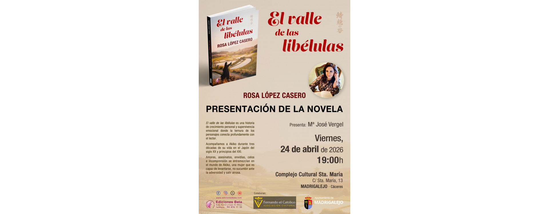 Presentación del libro "EL VALLE DE LAS LIBÉLULAS" en el Complejo Cultural Santa María de Madrigalejo (Cáceres)